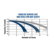 Cycle life vs depth of discharge for the PDC series